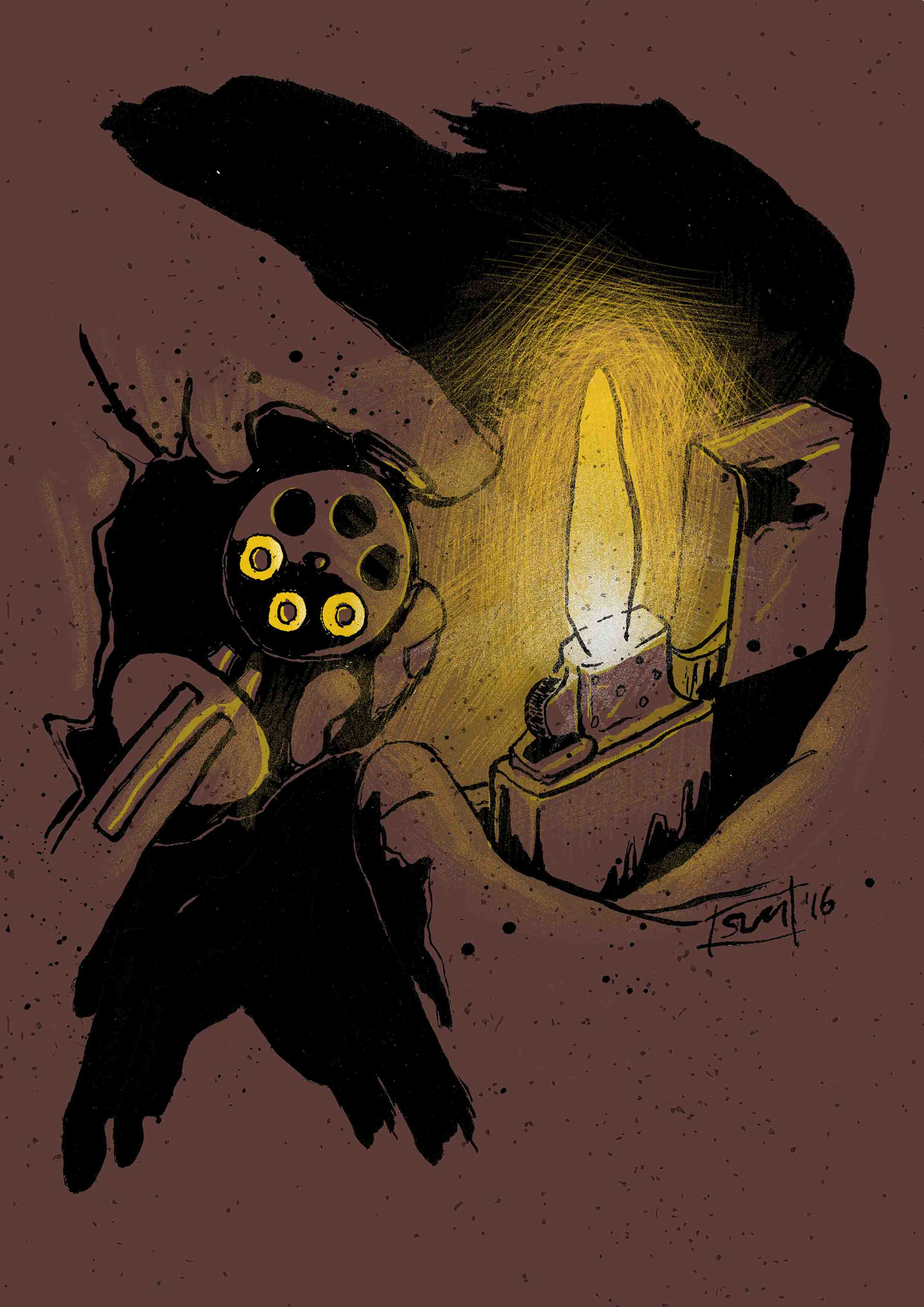 Blood Simple - How many bullets?, Indian ink with digital colour, A4, 2016
